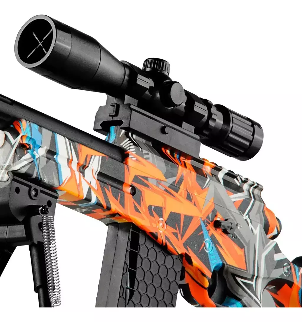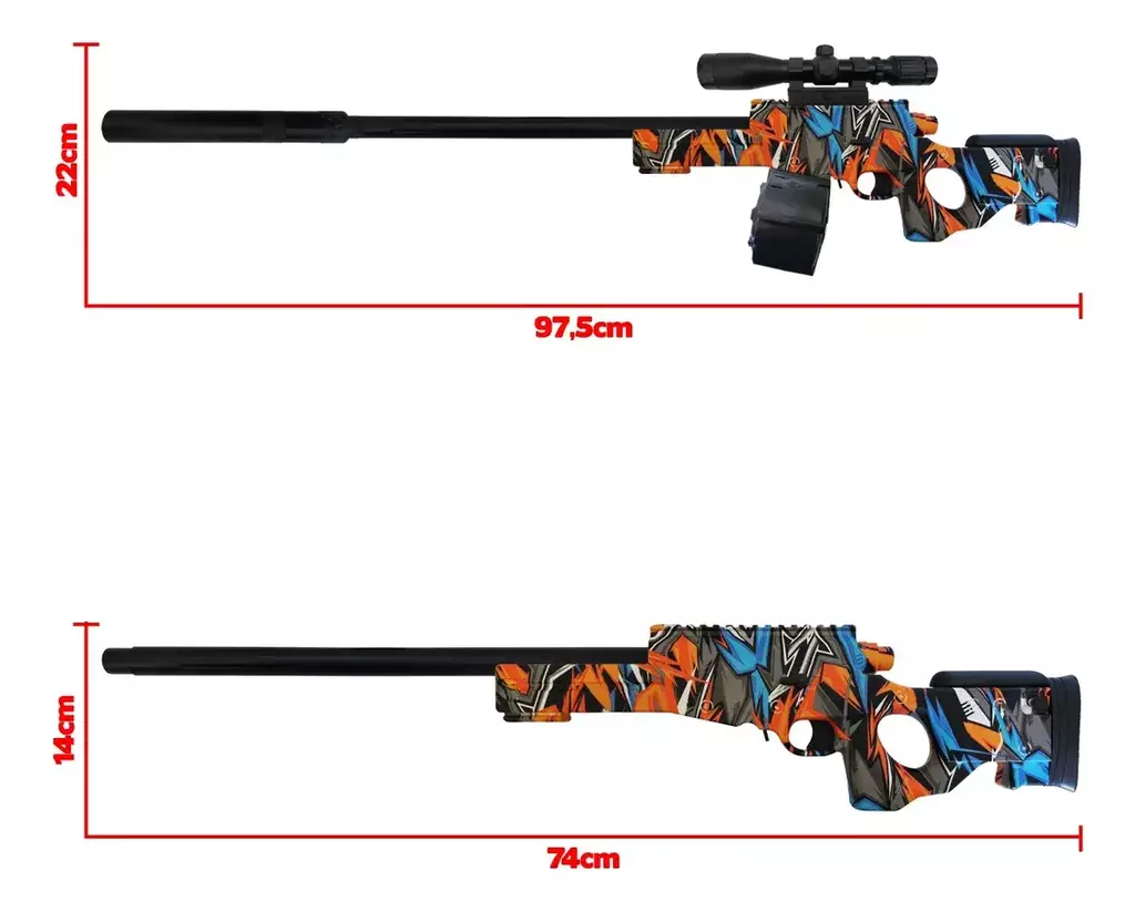 Potência Excepcional: Com uma velocidade máxima de 35 metros por segundo (114 fps), esta sniper oferece uma potência formidável que garantirá que você alcance seus alvos com precisão e confiança, mesmo a longas distâncias.