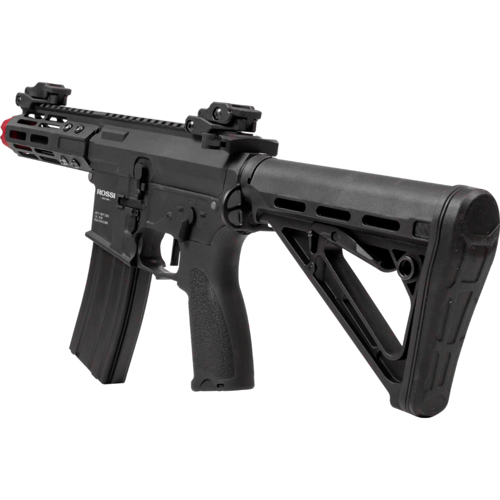 O Rifle Elétrico de Airsoft Rossi PDW 6mm combina materiais de alta qualidade, como metal e polímero, para garantir um desempenho superior em campo. Seu handguard modelo M-Lock de 5,5 polegadas e trilho Picatinny de 22 mm proporcionam versatilidade na personalização com acessórios adicionais.