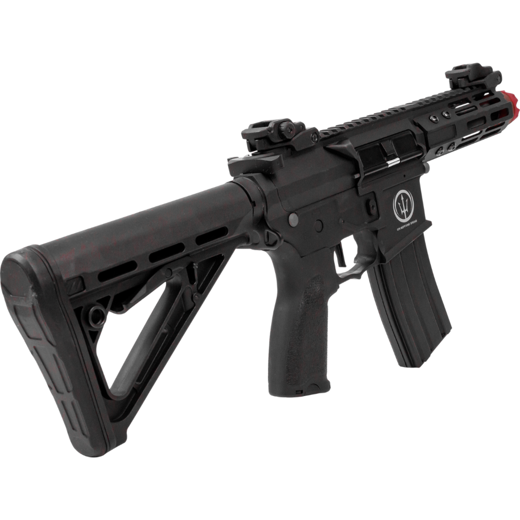 Equipado com sistema mosfet e gearbox V2, o Rossi PDW garante uma resposta rápida do gatilho, mesmo sem programação eletrônica. A ponteira vermelha de metal com rosca de 14 mm adiciona um toque de realismo ao design.